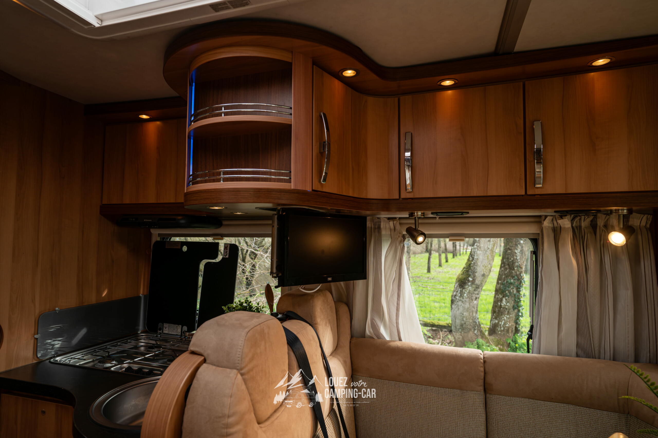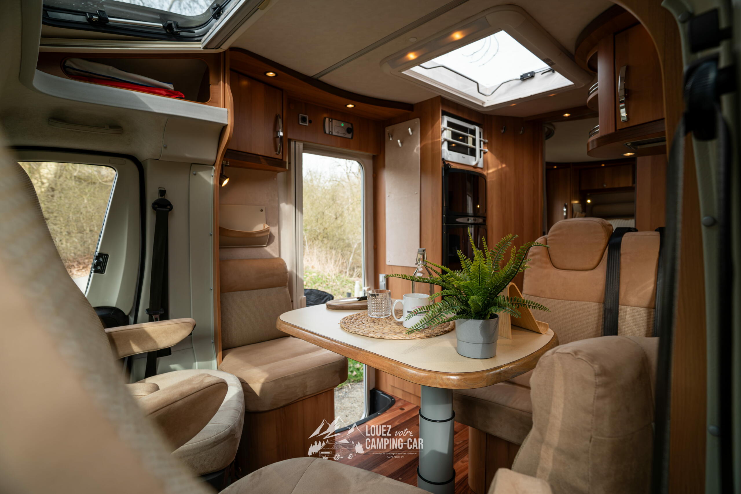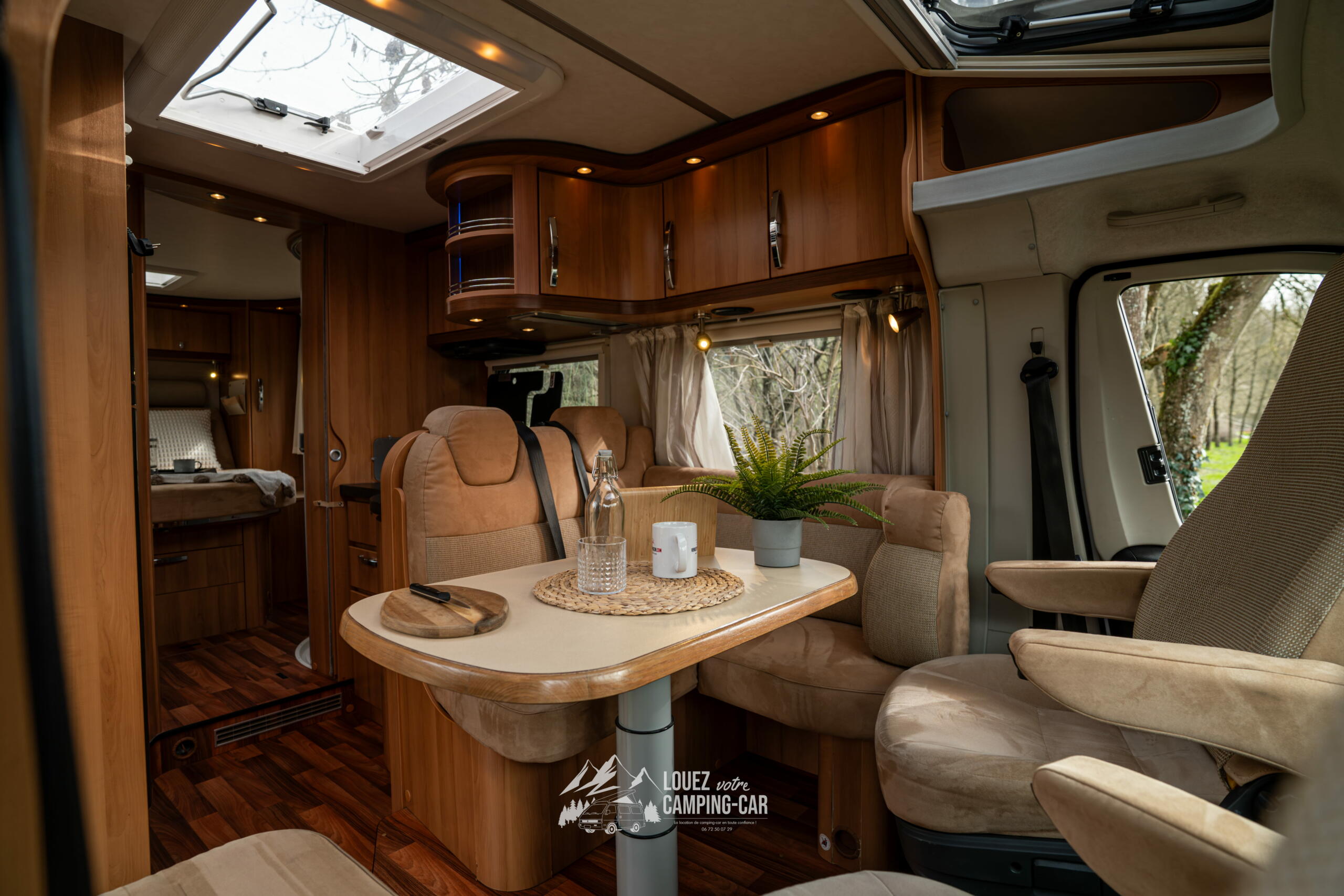 Son salon lumineux, grâce aux sièges cabine pivotants et aux grandes baies, crée une atmosphère agréable pour les repas ou les moments de détente. La cuisine en L est fonctionnelle et bien équipée, avec un réchaud 3 feux, un grand réfrigérateur et de nombreux rangements. La salle d’eau avec douche séparée apporte un vrai confort, proche de celui d’un petit appartement. Malgré ses 7,29 m, le véhicule reste maniable et agréable à conduire grâce à sa base Fiat Ducato reconnue pour sa fiabilité.